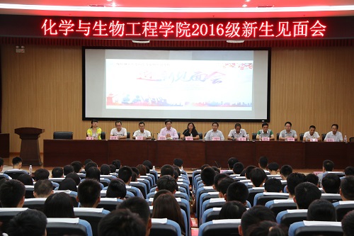 在雁山校区图书馆报告厅举办2016级本科新生见面会,出席本次见面会的有学院党委书记梁军、学院院长李建平、党委副书记陶剑飞、副院长潘宏程、刘勇平、副处级调研员周德海、院长助理邹志明、李海云及各教研室主任、2016级各班班主任、各年级辅导员。本次见面会由党委副书记陶剑飞主持。