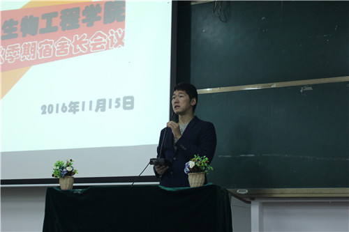 出席本次会议的有学院党委副书记陶剑飞老师、16级辅导员何宗辉老师、楼栋管理委员会全体成员以及学院15、16级宿舍长。会上,党委副书记陶剑飞老师首先发言,她为同学们分享了一个关于学霸宿舍集体考研的故事,让同学们深刻的认识到宿舍舍友间的团结、经验的分享、共同的努力对于学习生活的重要性。接着何宗辉老师就宿舍长职能、宿舍安全、宿舍卫生三大问题展开论述,特别强调了大功率电器的使用问题,希望同学们遵守宿舍规章制度,借助本次宿舍装饰大赛这个平台营造出一个良好的宿舍环境。