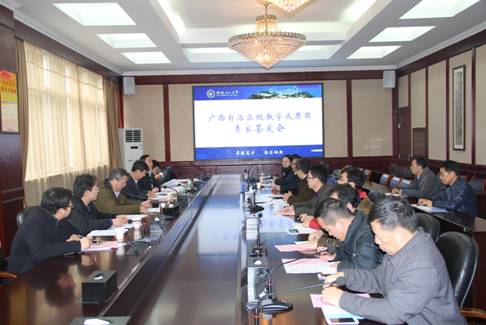 在屏风校区教八楼三楼会议室举行了申报广西壮族自治区级教学成果奖专家鉴定会。安徽大学副校长、博士生导师薛照明教授,太原理工大学国际合作处处长(原化学化工学院院长)、教育部煤科学与技术重点实验室副主任、博士生导师李瑞丰教授,湖南师范大学“化学生物学及中药分析”教育部重点实验室主任、博士生导师谢青季教授,中南大学化学化工学院应用化学系主任、博士生导师潘春跃教授,中南大学化学化工学院博士生导师蒋玉仁教授,安徽大学化学化工学院副院长、博士生导师毛昌杰教授,广西师范大学化学与药学学院博士生导师赵书林教授等作为鉴定专家组成员出席,学院参加鉴定的4项教学成果项目组主要成员参加了会议。会议由黑白直播官网