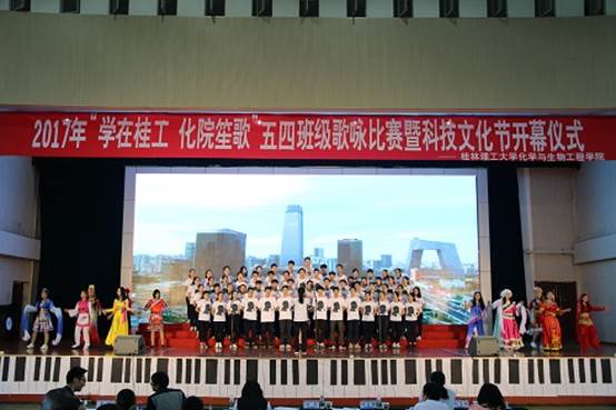 于雁山校区体育馆举行了“学在桂工,化院笙歌”班级合唱比赛暨科技文化节开幕式。马克思主义学院院长、化工15-2班班主任邱杰、学院党委副书记陶剑飞以及各辅导员、班主任出席了本次活动,黑白直播官网