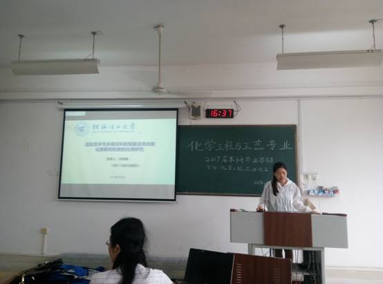 2017届化学工程与工艺专业(化学工程方向和石油化工方向)71名本科毕业生于2017年6月8日进行了毕业论文答辩,答辩工作分为4组进行,地点分别在雁山校区05308、05310、06605、06607教室。教务处刘峥副处长,广西植物研究所李典鹏研究员及化工教研室全体老师参加了答辩。答辩工作严格按照桂林理工大学相关程序进行。各答辩小组认真听取了每位学生的汇报内容,并在此基础上,针对学生的实验完成情况、论文写作规范和过程材料等方面,进行现场提问。毕业生如实回答了问题,针对暂时解决不了的问题,承诺答辩会后给予解释。