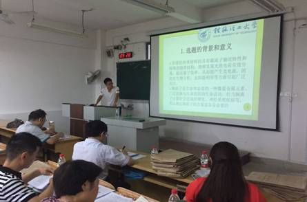 6月6日,70名应用化学专业及8名化学工程与工艺(卓越班)本科毕业生在雁山校区06205、06504、06514、06515四个教室同时进行了毕业论文答辩工作,并邀请田建袅教授(广西师范大学化学与药物学院)、俞建国(中国地质科学院岩溶地质研究所)、袁星义(桂林市环境监测中心站)、胡长征(桂林理工大学材料科学与工程学院)作为校内外专家与应用化学专业全体指导教师参加了答辩会。
