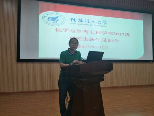 在雁山校区图书馆学术报告厅召开2017级硕士研究生新生见面会暨实验室安全培训会。学院全体党政领导班子成员、硕士生导师、研究生辅导员及全体2017级研究生新生参加了会议。会议由学院副院长张淑华主持。
