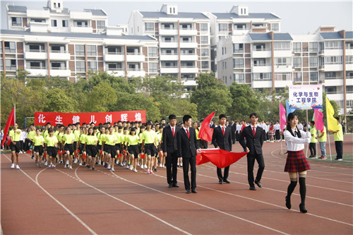 由103名运动员组成的方块队高举院旗,迈着整齐的步伐,伴随着“青春如火,化生有我;激情澎湃,化生不败”的口号,昂首走过主席台,展现出了黑白直播官网