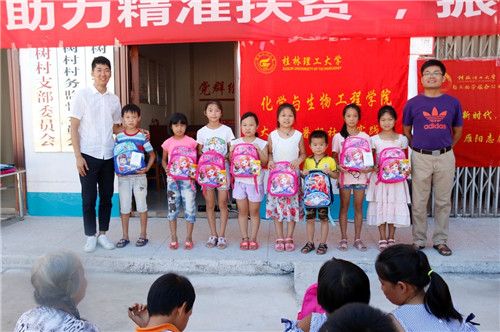 暑期社会实践队在三树村村委举行了“助力精准扶贫,振兴乡村发展”为主题的捐赠仪式。三树村第一书记杨晓与学院何宗辉,陈文甫,刘宇辉三位老师一同为孩子们送上文具。