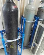 经过学院内部调整和实验室负责人自购,现有气瓶已经全部固定,顺利消除气瓶倾倒带来的安全隐患,在此过程中,提高了师生安全意识。除了安装气瓶固定支架,学院要求固定架铁链位置必须安装防护套,以减少气瓶与固定铁链的摩擦,消除钢瓶-铁链摩擦带来的安全隐患。