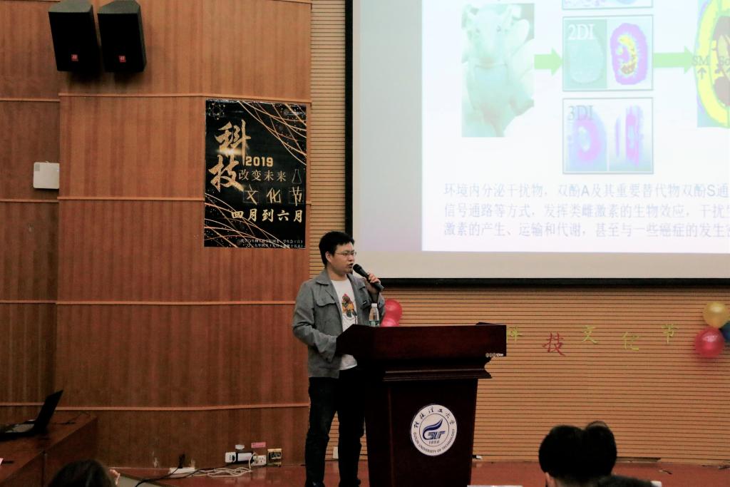 开幕式伊始,学院院长助理侯士立为本届科技文化节开幕式暨化学协会宣讲会致辞。侯老师在致辞中表示,学院推出多项形式新颖、内容充实的科技创新活动,旨在搭建一个科技创新平台,引导更多化生学子极参加课外科技创新活动,培养创新意识和创新能力,增强人文精神,提高文化品味。在化学协会宣讲环节,闫力强老师从与我们生活密切相关的衣、食、住、行方面解释了化学世界的奥秘所在;从讲述分析化学应用方面,引导了同学们在专业学习中应积极探索,勇于创新、求知上进;从自身学习与科研经历介绍中,强化了同学们的专业认同感与职业使命感。