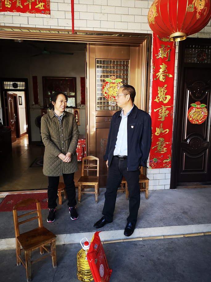 领导在学校驻三树村第一书记杨晓、王洪让的陪同下深入结对帮扶农户家中进行走访,送去慰问品,了解贫困户一年来的生产生活情况,并向老乡们转达了学院师生的良好祝愿。