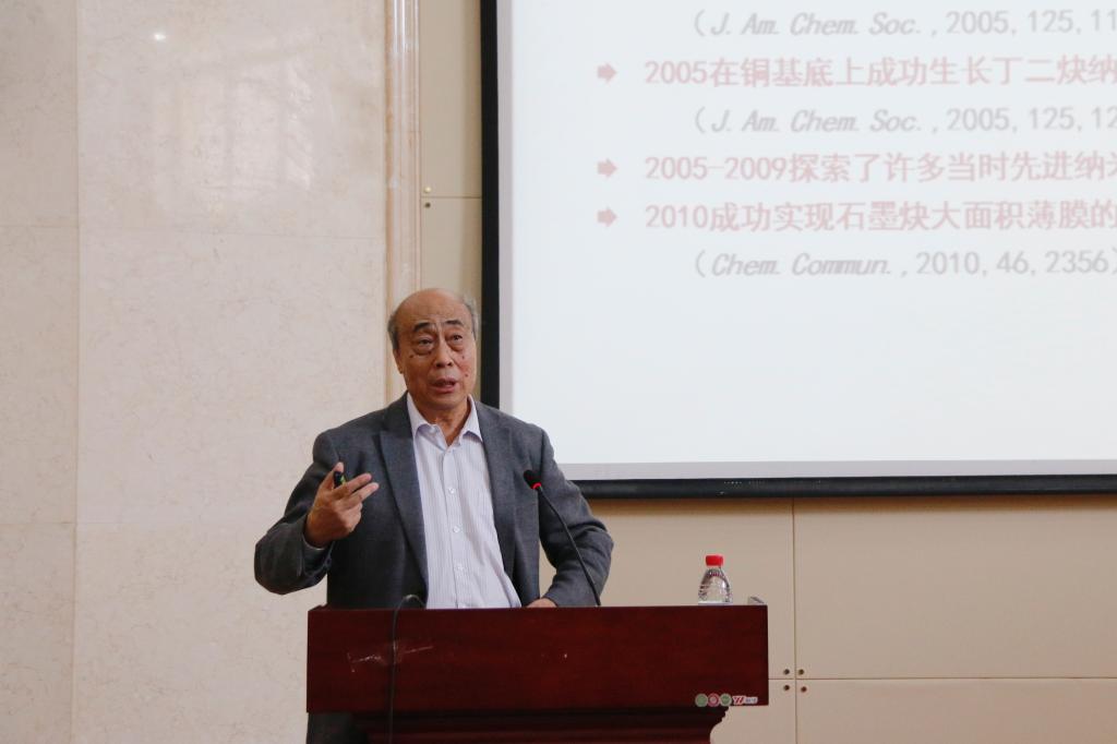 在题为“二维石墨炔:新兴电化学能源”报告中,李玉良院士回顾了石墨炔材料的发展历史,介绍了国际上近年来石墨炔研究的最新进展和发展趋势。李院士重点介绍了其研究团队在石墨炔生长、表征、应用方面的最新研究成果,还介绍了石墨炔在单原子催化、能源存储、石墨炔无金属电催化领域的应用前景等。