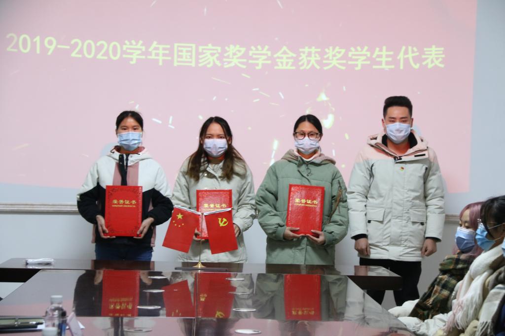 随后,张伟颀老师宣读了表彰决定,与会老师向2019-2020学年度国家奖学金、国家励志奖学金、2020-2021学年度自治区人民政府奖学金、2019-2020学年度桂林理工大学“自强之星”、2020年黑白直播