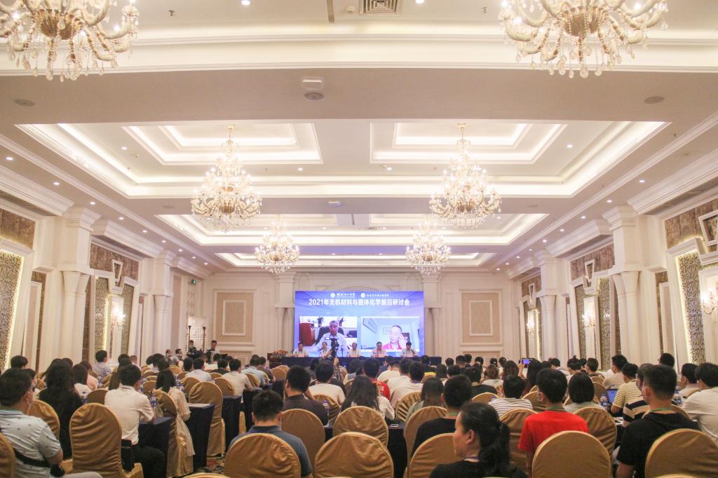 具体承办的“2021年无机材料与固体化学前沿研讨会”开幕式在桂林举行。本次会议主席、中国科学院院士、吉林大学冯守华教授(线上出席),中国科学院院士、中国科学院福建物质结构研究所洪茂椿研究员,中国科学院院士、清华大学李亚栋教授,中国科学院院士、中山大学陈小明教授(线上出席),教育部长江学者特聘教授、北京科技大学邢献然教授出席,学校校长解庆林教授出席并致辞,学校副校长梁福沛教授出席并主持开幕式。来自全国50多所高校、科研院所的180多名代表参加本次研讨会。