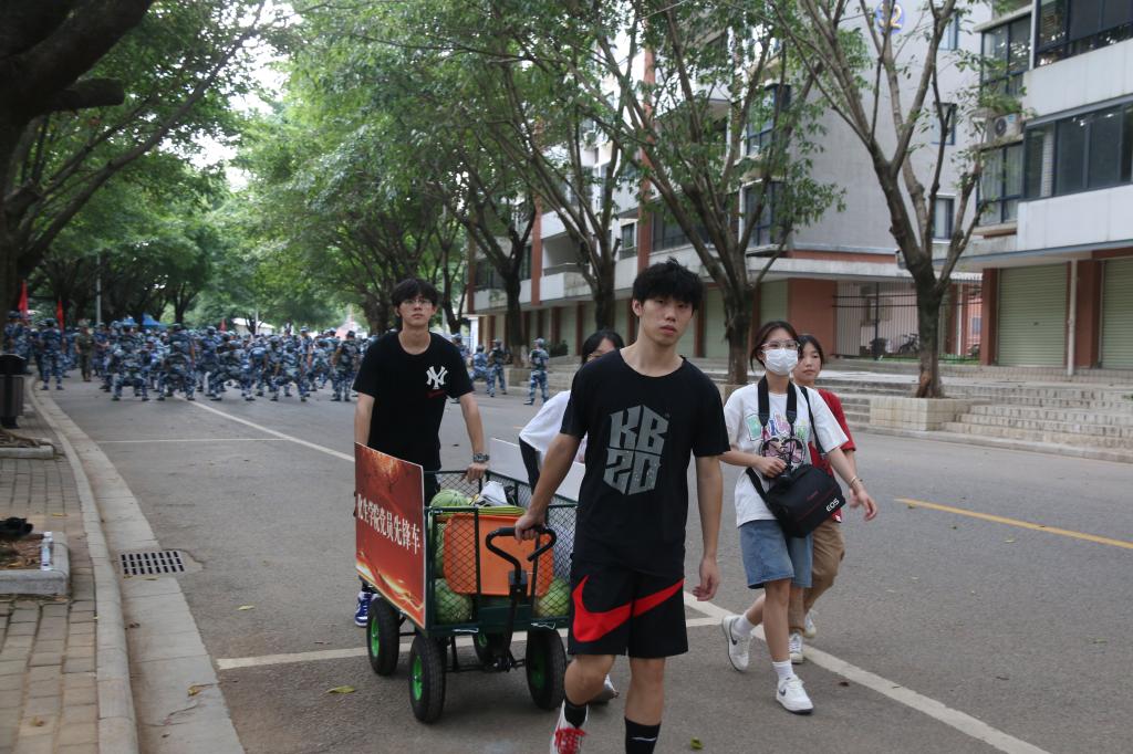 现场,彭书记一行向同学们分发清凉西瓜解暑,传递对新生的浓浓关心与祝福。参训学生备受鼓舞、士气高涨,并报以热烈掌声。大家纷纷表示将继续保持优良作风,磨炼意志,勤奋训练,彰显青春风采。