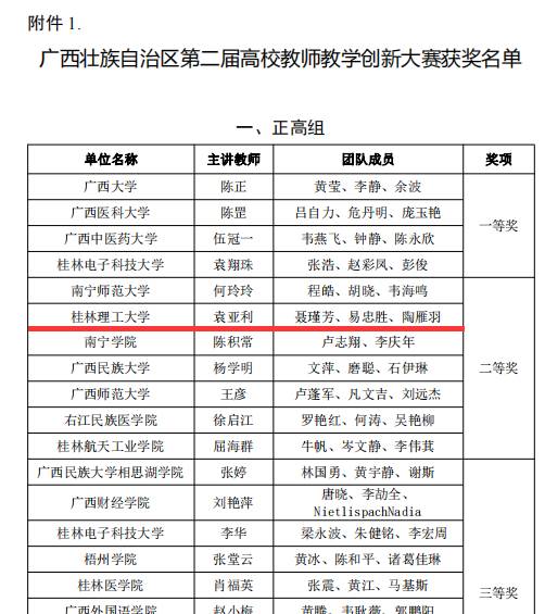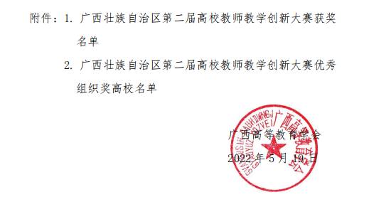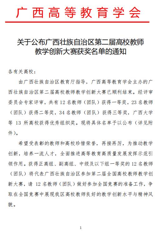 近日,广西高等教育学会公布了第二届广西高校教师教学创新大赛获奖名单,黑白直播官网