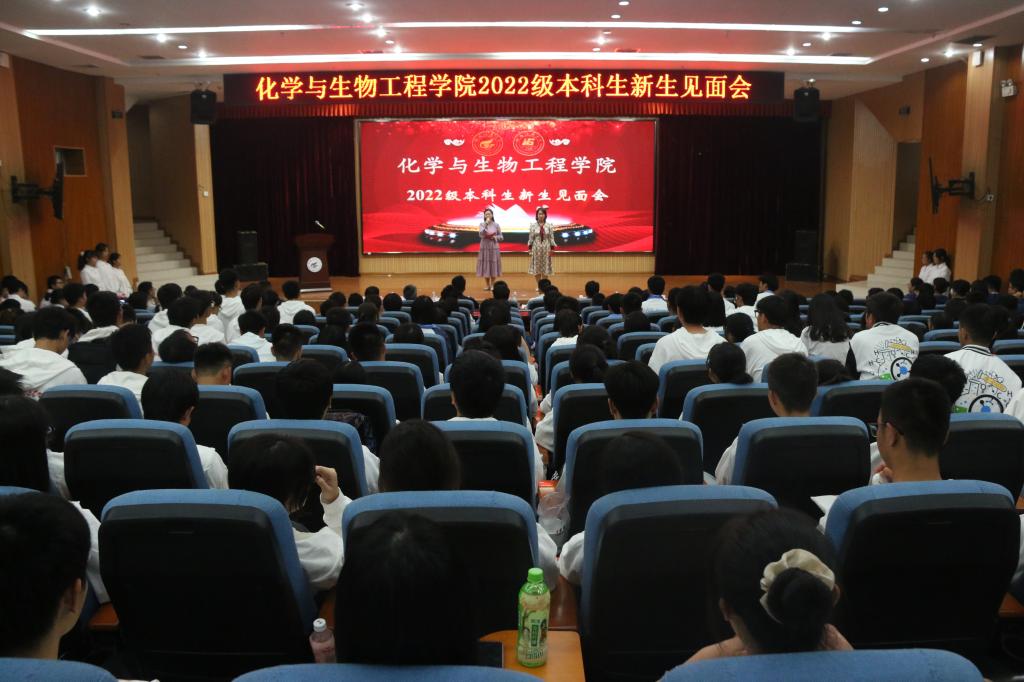 在雁山校区图书馆报告厅召开2022级新生见面会。学院党委书记彭代江、院长匡小军、学院其他党政领导,新生班主任、新生辅导员及全体新生参加了本次见面会。