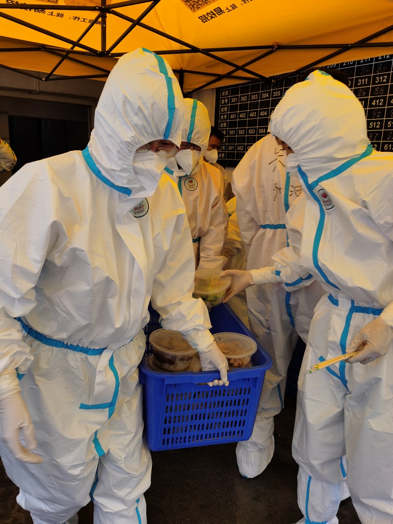 党委副书记、院长匡小军教授带领教师志愿者到学生宿舍楼给学生送餐。用实际行动发挥先锋模范作用,在战疫前线尽显新时代人民教师的使命和担当。