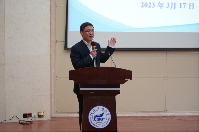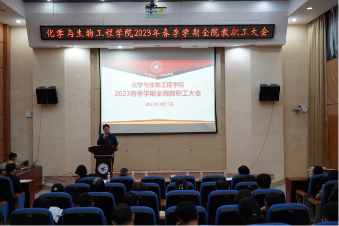 在雁山校区萃华楼报告厅召开2023年春季学期全院教职工大会。学院全体教职工参加了会议,会议由学院院长匡小军主持。