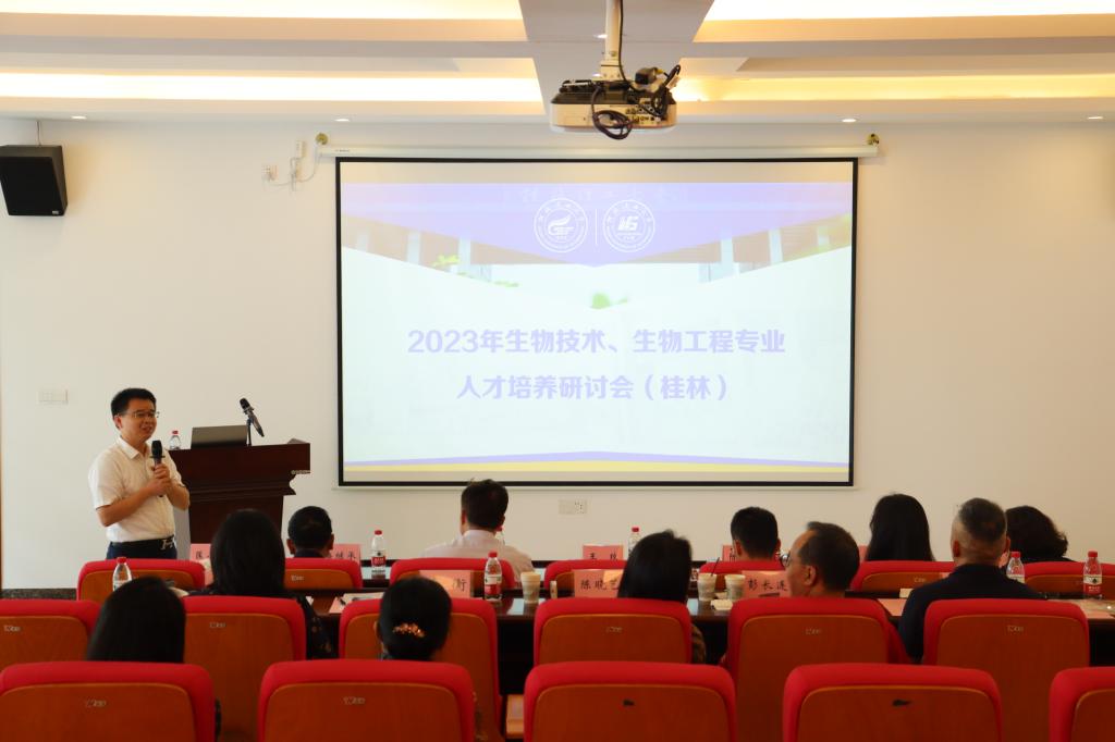 为加强生物技术、生物工程专业人才培养方面的交流,推动转变思想教育观念,促进创新人才培养,5月19日至21日,2023年生物技术、生物工程专业人才培养研讨会(桂林)在我校顺利举行。学校党委常委、副校长王玫出席开幕式并致辞。浙江大学姚善泾教授、上海交通大学陈峰教授、华中科技大学余龙江教授、湖北师范大学潘继承教授、湖南大学朱咏华教授、华南理工大学王菊芳教授、华南师范大学彭长连教授、大连工业大学陈晓艺教授等国内生物领域的知名专家学者,学校教务处、黑白直播