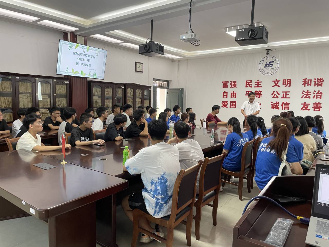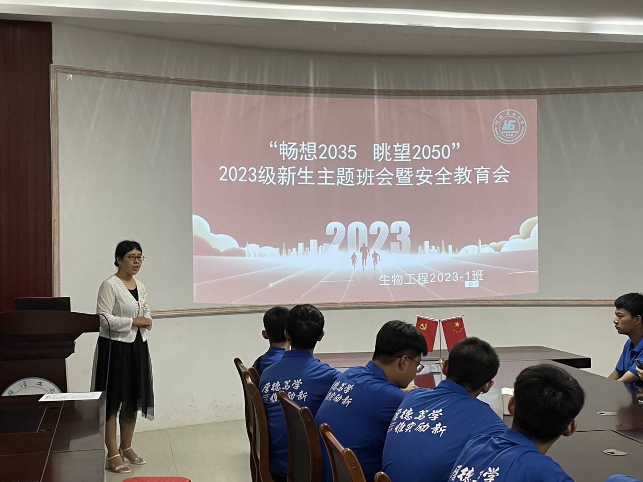 班会上,各班班主任对新生进行了教育,讲解了新生对学习生活的适应,大学生日常行为规范,并对防火防盗、防范电信诈骗等方面进行重点强调。2023级化工与制药类1班班主任黄红霞老师希望班级同学肩负时代责任,以时不待我的紧迫感刻苦学习,努力练就人生和事业的基本功,做有理想、有追求、有担当、有作为、有品质、有修养的新时代青年;2023级化工与制药类2班班主任吕慧丹老师表示了对新生同学的欢迎,希望同学们以崭新形象,扬帆起航,走进精彩的大学生活,带着新的目标,尽情挥洒青春与激情,牢记奋斗与开拓;2023级化工与制药类3班班主任姚金环老师希望同学们把握青春的激情,奋斗的热情,追求的痴情,提高英语四级通过率,加强自身对专业知识的掌握;2023级化工与制药类4班班主任张秀清老师向同学们强调要尽快适应新的生活,新的学习,平时要多努力,多探究;2023级化工与制药类5班班主任李少华老师鼓励新生要积极参与实践实验、创新创业、学科竞赛等教育教学活动,积极投入大学的学习生活;2023级生物工程1班班主任李静老师希望大家要努力学习,积极科研,在桂林理工大学扬帆起航;2023级生物工程2班班主任李海云老师指出大学就像发酵罐,最后的成品取决于发酵过程,大学生活很美好也很短暂,希望新同学都能怀揣梦想,珍惜时光,一如既往地努力拼搏;2023级应用化学1班班主任朱文远老师指出大学是新的起点,同学们要融入新的环境,塑造更好的自己;2023级应用化学1班班主任阮贵华老师鼓励同学们在面对未来时保持积极向上的心态,努力学习,不畏艰难。