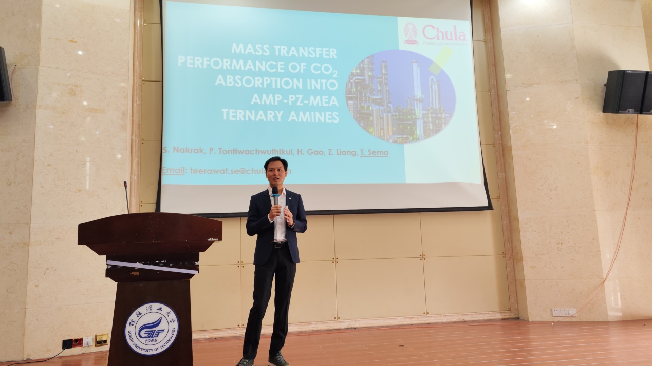 梁志武教授和Teerawat Sema博士分别作了题为“胺吸收法捕获二氧化碳的化工工程基础”和“Mass transfer performance of CO2 absorption into AMP-PZ-MEA ternary solvent”的学术报告,为黑白直播官网