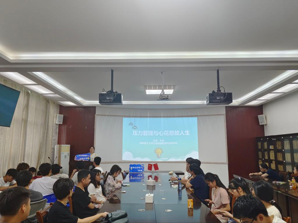 于12217会议室举办了“化生青语”系列活动第六讲——“压力管理与心花怒放人生”专题讲座。本次讲座主讲嘉宾为林理工大学心理健康教育与咨询中心专职教师、国家二级心理咨询师李云,学院40余名本科生与10余名研究生聆听了讲座。