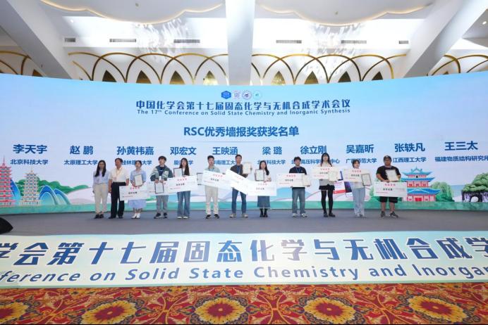闭幕式期间,郑兰荪院士和RSC期刊代表胡咏絮老师共同为获得RSC期刊优秀墙报获奖者奖颁奖,郑兰荪院士和Nano Research期刊代表王训老师共同为获得Nano Research期刊优秀墙报奖获奖者颁奖。