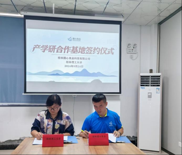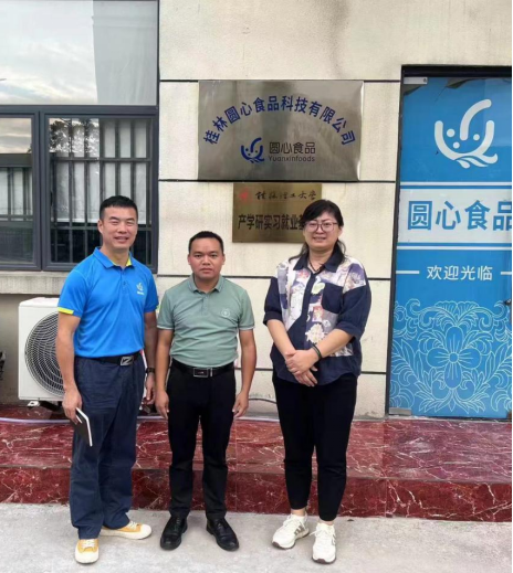 副院长李霞一行三人到桂林圆心食品科技有限公司开展合作洽谈并举行产学研实习就业基地签约及挂牌仪式。桂林圆心食品科技有限公司董事长刘诗昆、桂林经济技术开发区党工委委员、管委会副主任潘子锷、管理委员会经济发展和招商局局长吴剑飞、管理委员会经济发展局(统计局)主管唐诗茵、广西中政桂创科技有限公司董事长周关林等领导一起参加签约及挂牌仪式。