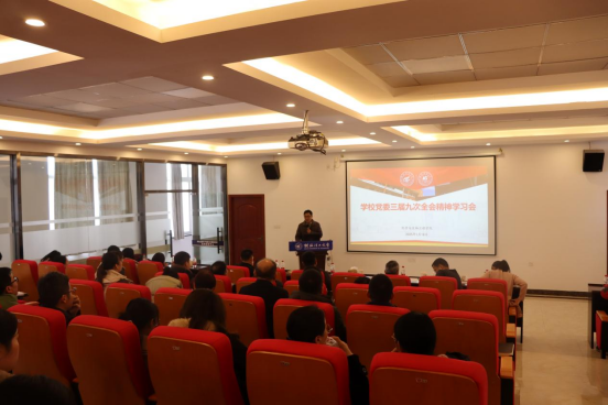 在屏风校区协同创新中心会议室召开了学校党委三届九次全会精神专题学习会。会议由学院党委彭代江主持,学院全体教师参与了此次学习。