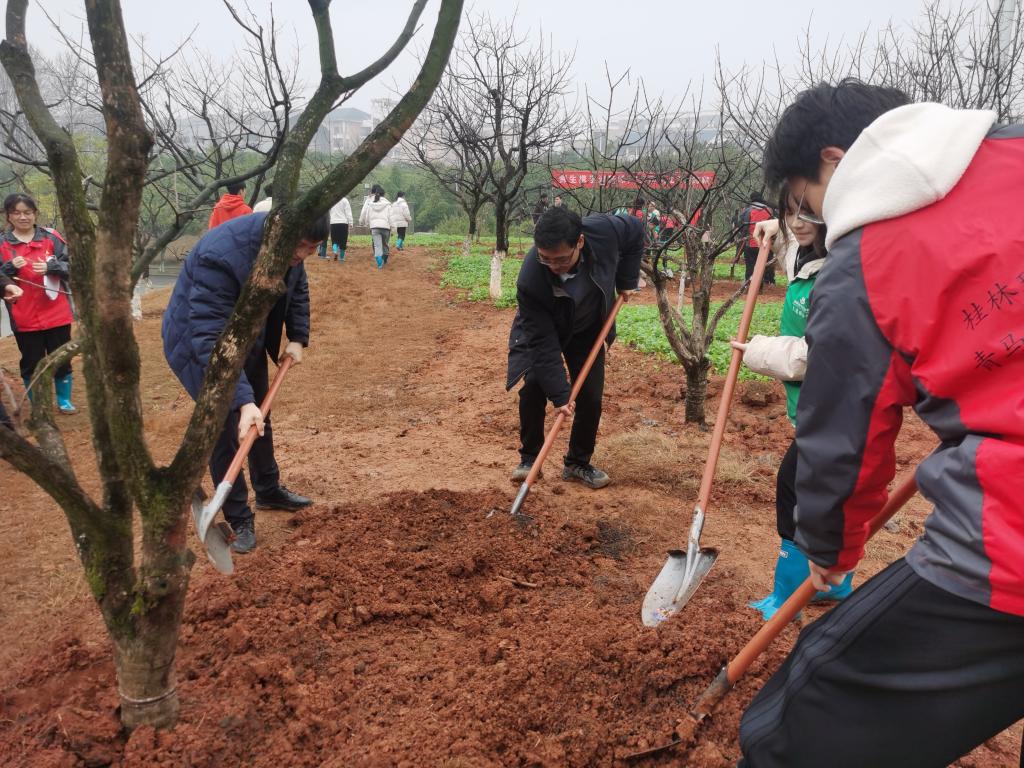 为深入学习贯彻习近平生态文明思想,践行“绿水青山就是金山银山”理念,扎实推动大学生劳动教育走深走实。3月12日,学院积极响应学校号召,组织师生参加了“师生携手添新绿,大美桂工共绘就”义务植树活动。学院党委书记彭代江,党委副书记李少华,知与行劳动教育工作室成员及学生代表参加了本次活动。