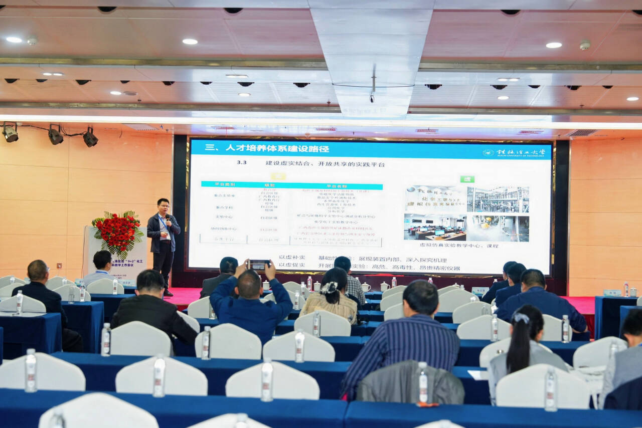会议在广西民族大学化学化工学院院长刘绍刚的主持下拉开帷幕。广西民族大学副校长姜明国教授、教育部高等学校化工类专业教学指导委员会副主任委员、四川大学梁斌教授和教育部高等学校化工类专业教学指导委员会委员、华南理工大学张正国教授致欢迎辞,强调深化工程教育认证、推动数智化教学改革的重要性,并呼吁加强校企协同育人,培养适应产业变革的复合型人才。大会报告环节汇集了来自高校、行业协会及企业的专题分享,涵盖工程教育认证、AI技术应用、课程建设创新等热点议题,其中中国化工教育协会秘书长唐旭华解析了工程教育认证标准与培养方案修订方向,华南理工大学张正国教授分享了能源化工专业课程建设经验,厦门大学李清彪教授分享了生成式AI在科研与教学中的实践应用。