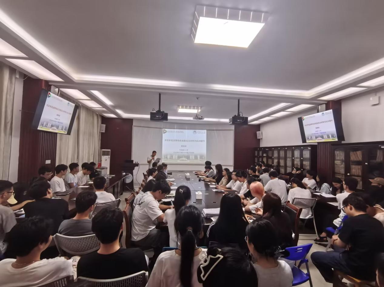 邀请,在我校雁山校区萃华楼217室作了题为《高效率低滚降有机电致发光材料与器件》的学术报告。报告会由学院副院长孔翔飞教授主持,近百名师生参加。