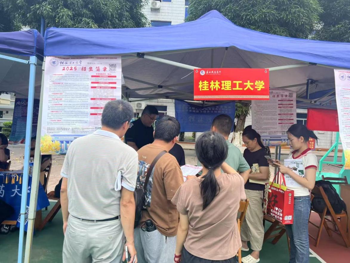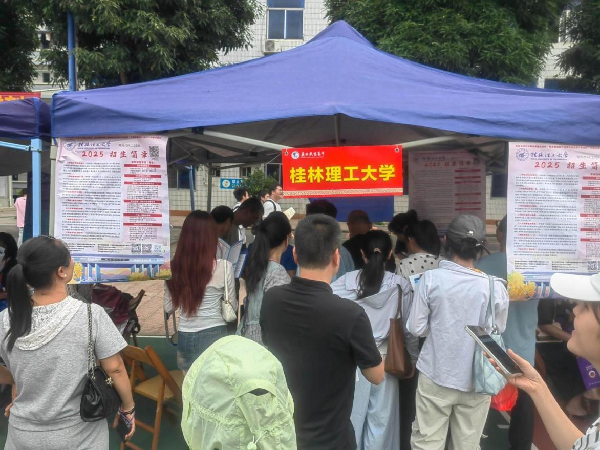 为提升生源质量,强化招生宣传工作,学校应邀参加“武鸣高中2025年高校招生现场咨询会”,开展本科招生宣传活动。化生学院侯士立、李灵慧二位老师于2025年6月27日抵达南宁市武鸣区武鸣高级中学,在武鸣高中精心安排与组织下开展招生宣讲,向现场学生及家长详细介绍了桂林理工大学的历史沿革、办学现状与发展愿景,通过精准的政策解读与生动的案例分享,回应了学生和家长关于学校优势专业、录取分数线、招生计划、就业前景、转专业政策等热点问题的咨询。