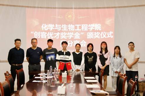 2022年“创客优才奖学金”颁奖典礼,对能源化学工程专业的黄健华、周金凤、罗睿、冯琼、赖秋杏、覃国庆等6位品学兼优学生进行表彰。能源化学工程专业温玉清、黄斌、陆振欢等3位老师和学生代表参加了此次颁奖典礼。