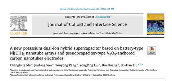 刘博天副研究员课题组开发了一种基于电池型正极和赝电容型负极的双离子杂化电容器,研究成果以题为A new potassium dual-ion hybrid supercapacitor based on battery-type Ni(OH)2 nanotube arrays and pseudocapacitor-type V2O5-anchored carbon nanotubes electrodes的论文被化学类知名期刊Journal of Colloid and Interface Science(IF=8.1)录用并正式发表。该项研究得到国家自然科学基金以及广西自然科学基金等多个项目的资助,黑白直播官网
