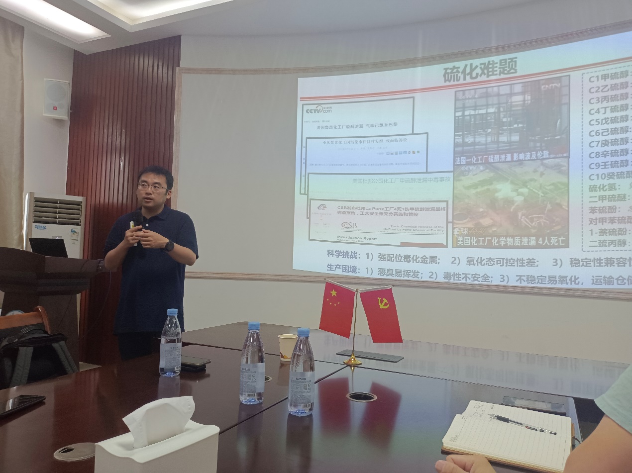 在报告中,姜雪峰教授分享了自己的学习工作经历,并对其学校和科研团队的情况进行了介绍。姜雪峰教授使用“无机硫向有机硫转化”的策略,通过面具效应,建立了无臭、稳定、可持续的绿色硫化学。重点介绍了绿色硫化试剂开发与策略建立,并用于后期硫化修饰与功能分子合成,与此同时,又介绍了在塑料光降解领域取得的研究进展。报告会后,姜雪峰教授与学院老师就相关研究领域进行了深入交流和探讨。