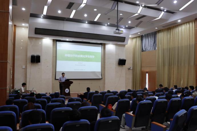 9月5日下午,中山大学毛宗万教授应邀在雁山校区萃华楼报告厅做了题为《肿瘤金属诊疗及其化学生物学》的专题讲座,讲座由学院院长匡小军教授主持,全院100余名师生参加了报告会。