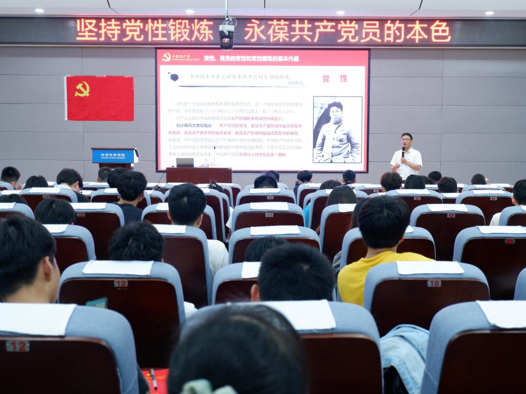 党委副书记李少华在地球与科学学院报告厅为预备党员讲授主题为《坚持党性锻炼,永葆共产党员的本色》专题党课。