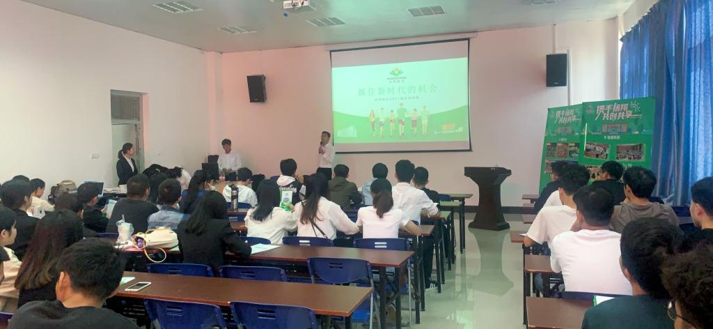 招聘会现场,广西扬翔股份有限公司代表对其公司做了简单的介绍。接着,企业代表从公司概况、仪器设备、组织构架、招聘要求、福利待遇、岗位职责等方面做了详细的讲解,随后对同学提出的问题进行了相应的解答。最后有意向的毕业生留下进行了简单的笔试和面试,研究生直接进行了面试。
