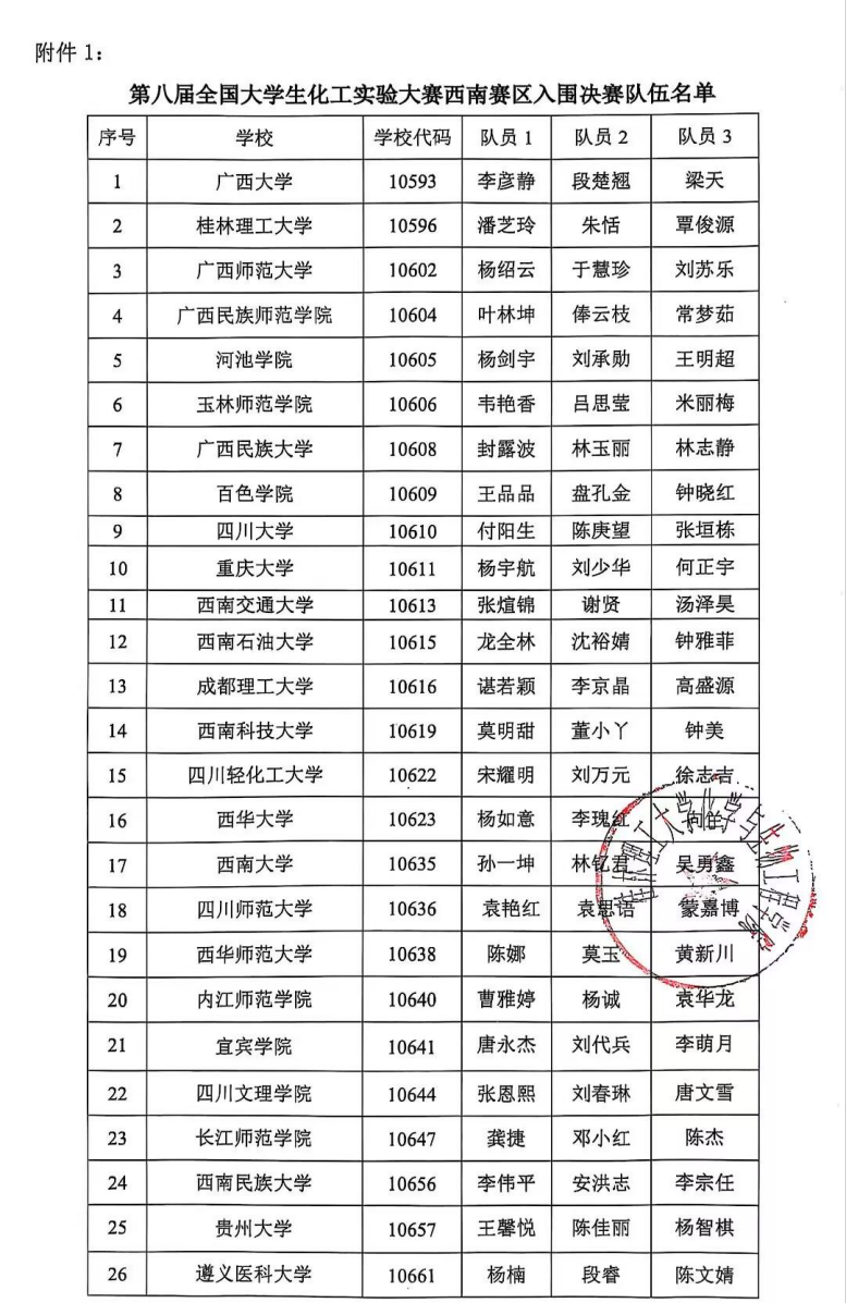 导航痕迹 当前位置: 主页 >> 教育教学 >> 第八届全国大学生化工实验大赛西南赛区专栏 >> 正文 第八届全国大学生化工实验大赛西南赛区入围决赛队伍名单通知 【 发布日期:2025-06-24 浏览次数: 】 上一条:第八届“中控杯”全国大学生化工实验大赛西南赛区决赛通知 (第三轮)